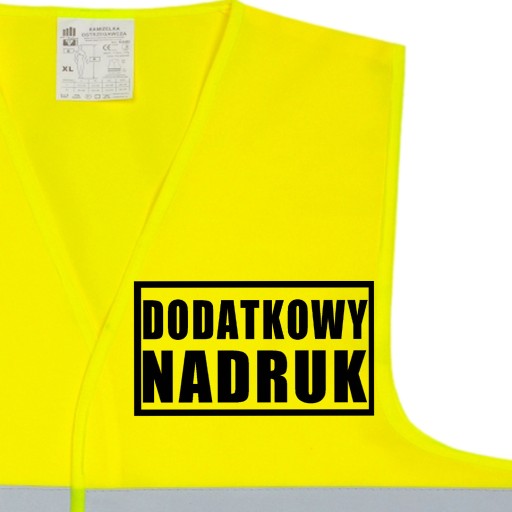 Na kamizelce możemy umieścić logo, tekst, grafikę - pod uwagę należy wziąć jedynie fakt iż kolor nadruku może ulec zmianie na żółtym/seledynowym podłożu (niebieski wychodzi dużo ciemniej, może wpadać w zieleń, żółty może się zaś tak nie odznaczać , szary wychodzi w odcieniach brązu) - nadruki takie wykonujemy wyłącznie na odpowiedzialność kupującego