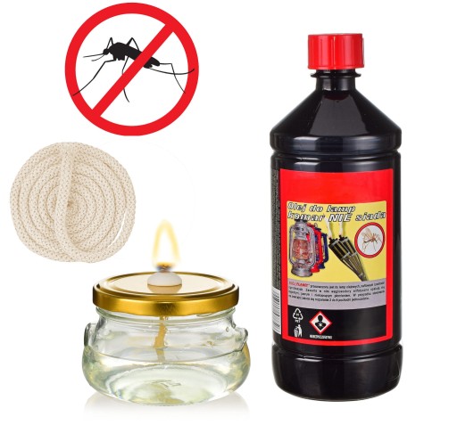 ZESTAW LAMPION LAMPA NAFTOWA, OLEJ NA KOMARY+KNOT