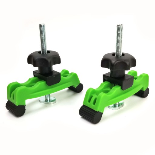 Małe, poręczne dociski do szybkiego unieruchamiania obrabianego elementu. Wykonane są z wytrzymałego tworzywa, zaopatrzonego w gumowe końcówki dociskowe zapobiegające uszkadzaniu materiału. Montaż przy pomocy śruby M6 zaciskanej pokrętłem.