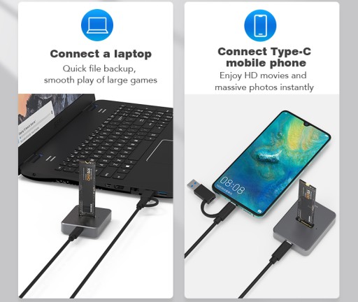 Aluminiowa wytrzymała stacja dokująca pozwalająca podłączyć dysk SSD NVME oraz NGFF do komputera za pomocą portu USB