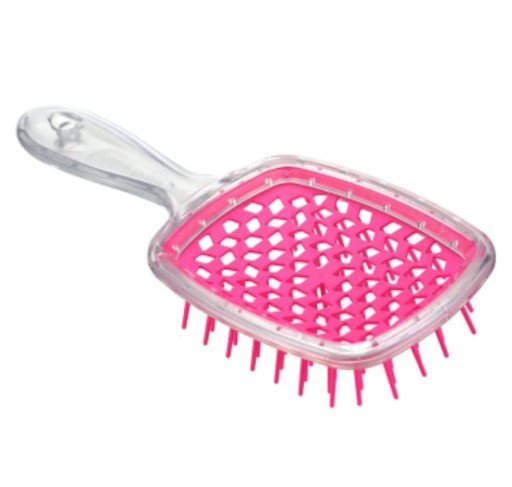 Doskonała szczotka do rozczesywania włosów. Specjalnie rozłożone niezwykle elastycznych ząbków umożliwiają szybkie i bezbolesne rozczesywanie włosów. Szczotka wyposażona została w elastyczną siateczkę, dzięki czemu dopasowuje się do kształtu głowy podczas czesania. Szczotka nie uszkadza struktury włosa dodatkowo masuje skórę głowy. Posiada ergonomiczną rękojeść, która wygodnie leży w dłoni, nie wyślizguje się. Szczotka nadaje się do rozczesywania włosów mokrych i suchych.
