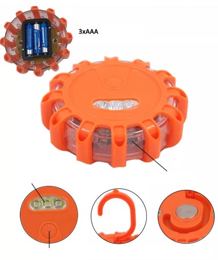 KOGUT LAMPA OSTRZEGAWCZA 15 LED + MAGNES + HAK + BATERIE