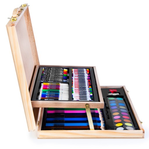 Zestaw artystycznyto doskonały początek przygody młodego artysty. Komplet jest funkcjonalny i składa się łącznie z108 praktycznych elementów.Mnogość przyborów sprawi, że każde użyciezestawu artystycznego będzie doskonałą podróżą w świat sztuki.W skład zestawu wchodzą 24 pastele olejne, 12 mini flamastry, 12 kredek świecowych, 20 kolorów farbek akwarelowych, 36 kredek, pędzelek, gumka, temperówki, paletka. Wykonane z najwyższej jakości materiałów przybory mają szeroką gamę kolorystyczną, co dodatkowo ułatwi wykonywanie prac plastycznych czy codzienny użytek. Całość została umieszczona w eleganckiej i praktycznej walizce, ułatwiającej przenoszenie i dodatkowo podbijającej walory estetyczne całego zestawu. Zestaw do malowania i rysowania to nie tylko obowiązkowy element wyposażenia każdego ucznia czy miłośnika kreatywnych zadań, ale także doskonały pomysł na prezent.Parametry: