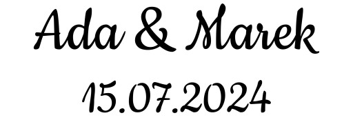 naklejkę wysyłamy w dwóch elementach - na jednym znajdują się imiona oraz data, na drugim napis 'Długo i szczęśliwie zaczyna się właśnie tu...' w układzie widocznym na wzorze.