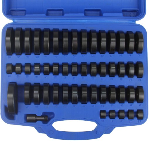 Zestaw 52 szt. dysków do montażu i demontażu łożysk, tulei, uszczelnień i gum. Przydatne w przypadku korzystania z pras hydraulicznych.