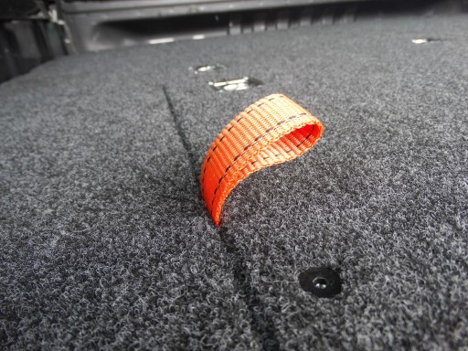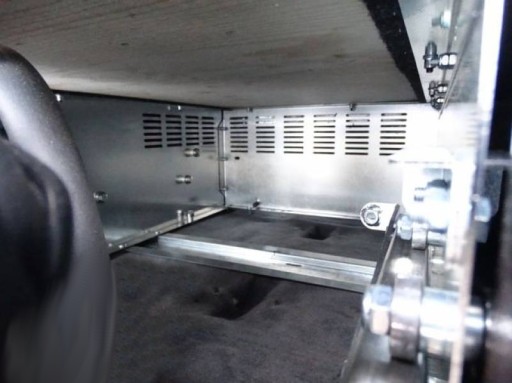 Górna część wykonana jest ze sklejki pokrytej tkaniną filcową, zabezpieczoną na krawędziach aluminiowym narożnikiem, co powoduje że całość ładnie komponuje się z wnętrzem samochodu i jest przyjemna w użytkowaniu.