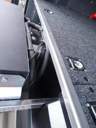 Mechanizm otwierania szuflad składa się z kształtownika ze stali nierdzewnej oraz zespołu łożysk tocznych zamontowanych zarówno u dołu jak i u góry prowadnic, a także po bokach szuflady. Taka budowa prowadnic eliminuje wszelki luz między szufladą a konstrukcją nośną, co gwarantuje, że z zabudowy nie wydostają się nieprzyjemne dźwięki w czasie jazdy w terenie oraz zapewnia dużą niezawodność.
