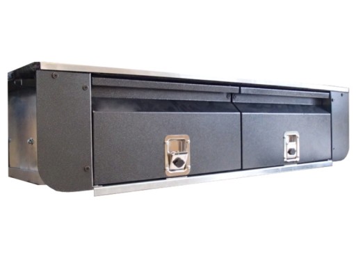 Mechanizm otwierania szuflad składa się z kształtownika ze stali nierdzewnej oraz zespołu łożysk tocznych zamontowanych zarówno u dołu jak i u góry prowadnic, a także po bokach szuflady. Taka budowa prowadnic eliminuje wszelki luz między szufladą a konstrukcją nośną, co gwarantuje, że z zabudowy nie wydostają się nieprzyjemne dźwięki w czasie jazdy w terenie oraz zapewnia dużą niezawodność.