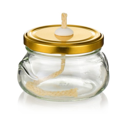 Lampion składa się z szklanego zbiornika na paliwo oraz wieczka z zamontowanym palnikiem ceramicznym.