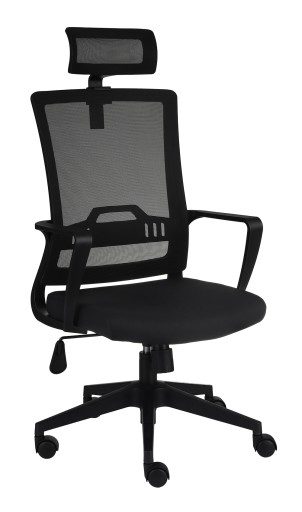Oparcie oraz zagłówek tapicerowane są trwałą siatką w kolorze czarnym, która świetnie dopasowuje się do pleców Użytkownika, oddycha co jest szczególnie ważne w miesiącach letnich. Siatkę cechuje bardzo wysoka odporność na ścieranie - 100 tys. cykli Martindale'a.