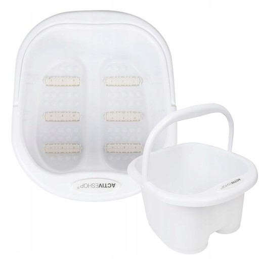 - Specjalistyczny pojemnik z uchwytem do moczenia stóp przed zabiegiem pedicure.