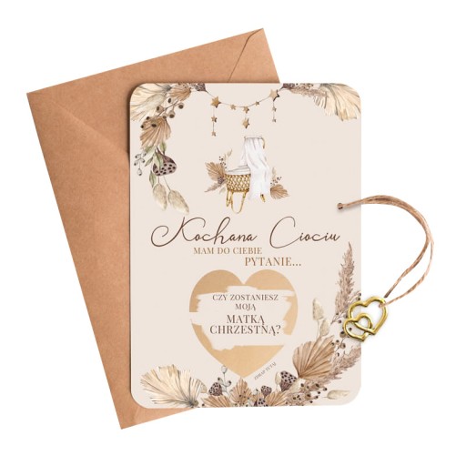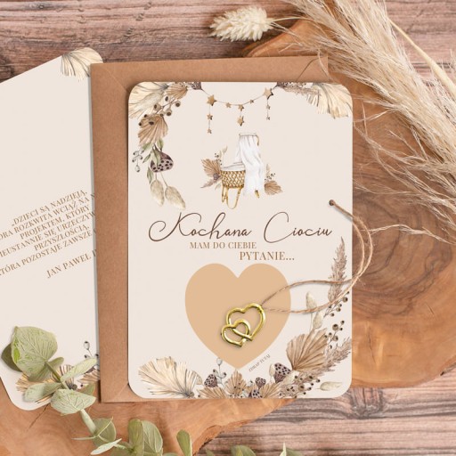- Oryginalna forma pytania do bliskiej osoby, o bycie chrzestną. Całość zachowana jest w stylu boho.