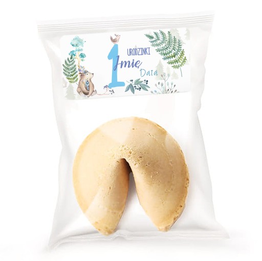 - pyszne ciasteczko, które skrywa w środku zaskakującą, pozytywną wróżbę dla Waszych gości, opakowane jest w celofanowe opakowanie, do którego dołączymy samoprzylepne etykiety