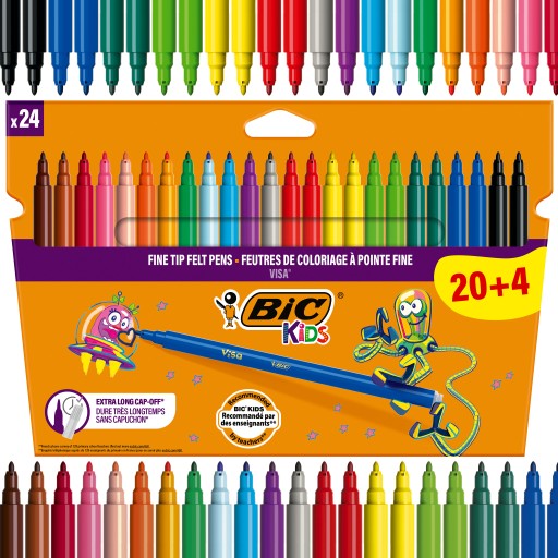 Filcowe końcówki flamastrów BIC Visa tworzą cienką linię 0,9 mm do rysowania wyrazistych, czystych linii i skomplikowanych kolorowych detali.