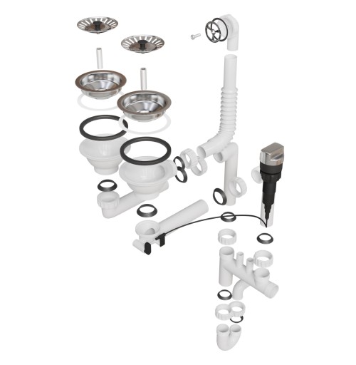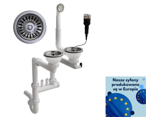 Syfon dwukomorowy automatyczny sitko chrom