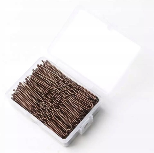 Komplet metalowych szpilek do włosów karbowanych o długości 5,5cm (w kolorze brązowym) świetnie trzymają włosy.