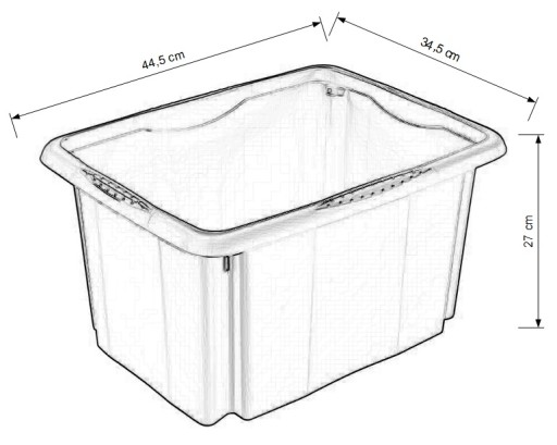 Pojemnik o wymiarze 44,5 x 34,5 cm i wysokości 27 cm