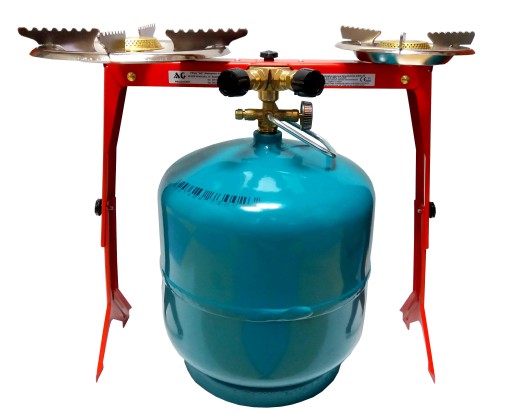 Dwupalnikowa kuchenka do użytkowania wraz z butlami o wielkościach od 0,35 do 3kg.