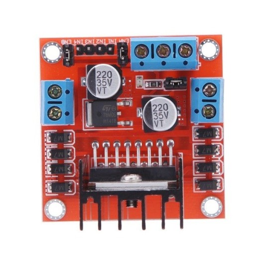 - Moduł ze sterownikiem L298 umożliwia kontrolę kierunku obrotów i prędkości dwóch silników prądu stałego lub jednego dwu fazowego silnika krokowego