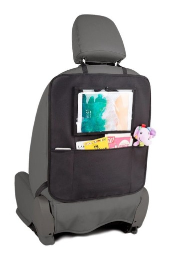 Posiada wyjątkowo mocną powierzchnię, która pomaga chronić przed zużyciem od spodu fotelika. Ponadto ochraniacz siedzenia ma zintegrowany przezroczystą kieszeń na tablet, a kieszeń na drobiazgi ułatwia przechowywanie zabawek, przekąsek i smoczków podczas podróży.
