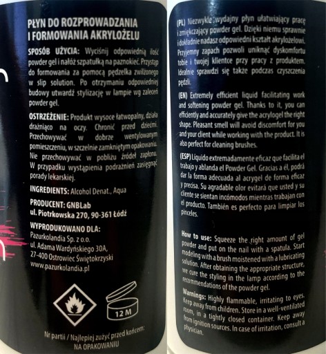 - Płyn przeznaczony do profesjonalnej pracy z akrylożelem.