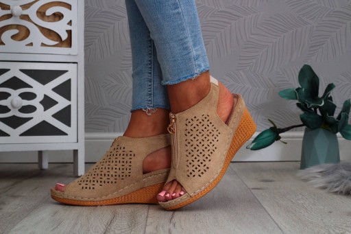 HIT! eleganckie sandały na koturnie, zapinane na suwaczek, wkładka skórzana HIT SEZONU !!!!