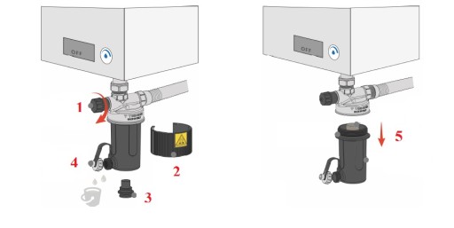 - Filtracja mechaniczna przez wkład filtracyjny (poziom filtracji 800 µm).