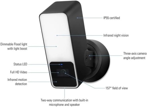 Dzięki szerokiemu polu widzenia 157° i noktowizji, kamera Eve Outdoor Cam obserwuje wszystko w dzień i w nocy - z zachowaniem szczegółów dzięki strumieniowemu przesyłaniu i nagrywaniu wideo HD na żywo. Dzięki dedykowanemu czujnikowi ruchu, kamera Eve Outdoor Cam nie będzie zawracać Ci głowy reagowaniem na liście powiewające na wietrze, małe zwierzęta i inne zdarzenia, które nie wymagają Twojej uwagi. A dzięki eleganckiej, odpornej na warunki atmosferyczne metalowej obudowie i eleganckiemu wzornictwu, kamera Eve Outdoor Cam pięknie komponuje się z zewnętrznym wystrojem każdego domu.