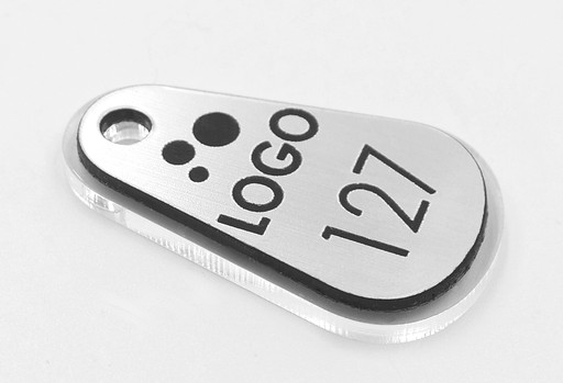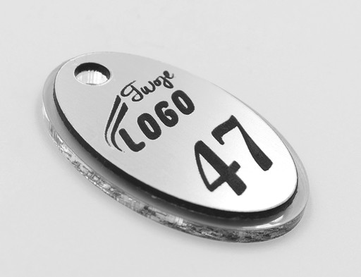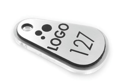 - Na breloku możemy wygrawerować dowolną treść: logo, numerację, nazwę firmy, telefon, adres itp.