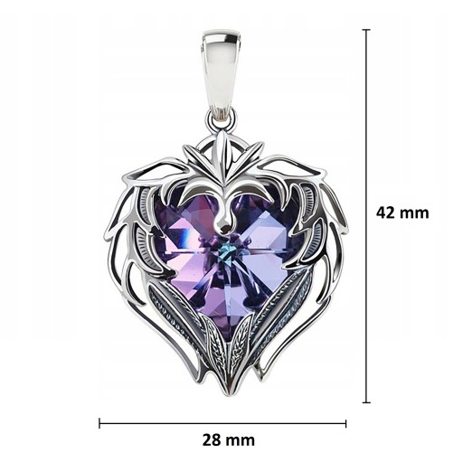Przedstawiamy państwu unikalną srebrną zawieszkę w kształcie serca. Piekna oprawa dodatkowo zdobi kryształ od przodu i boku. Sam kamień posiada piękny szlif który odwzorowuje odcienie fioletu oraz błękitu. Produkt został wykonany z najwyższej jakości srebra próby 925. W zestawie jest również pisemna gwarancja. Ten model zawieszki z pewnością doceni każda stylowa kobieta. Produkt jest solidny i wytrzymały, więc spokojnie posłuży długi czas.