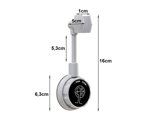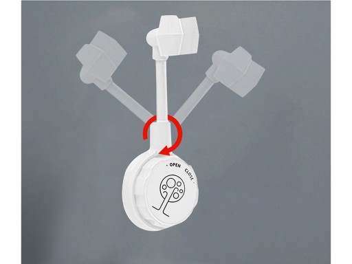W celu przymocowania uchwytu, trzeba go mocno docisnąć do gładkiej powierzchni, następnie przekręcić pokrętło do oporu w stronę napisu CLOSE. Mocowanie prysznicowe można dowolnie regulować, ustawiająć słuchawkę w dowolnej pozycji.