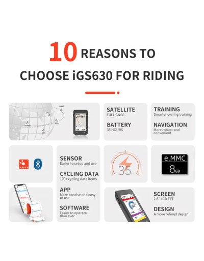 Najnowszy licznik rowerowy GPS iGS630 ma duży kolorowy ekran o przekątnej 2,8 cala, 8 GB pamięci i wbudowaną mapę offline.