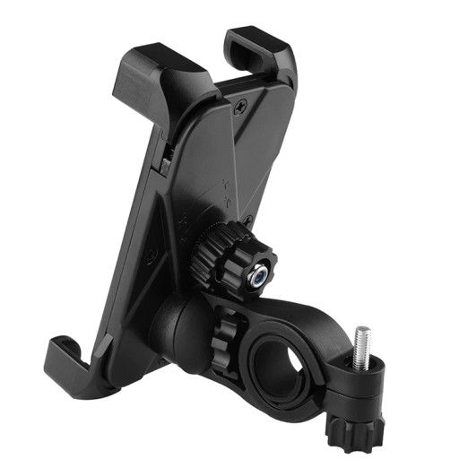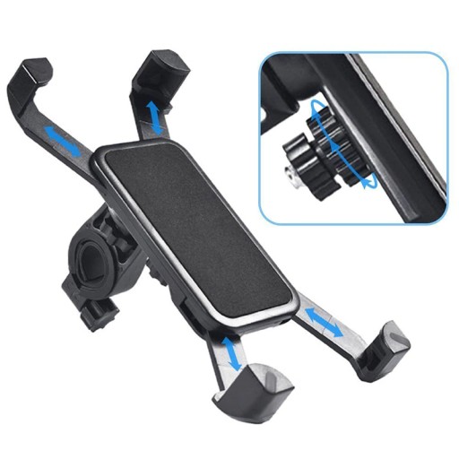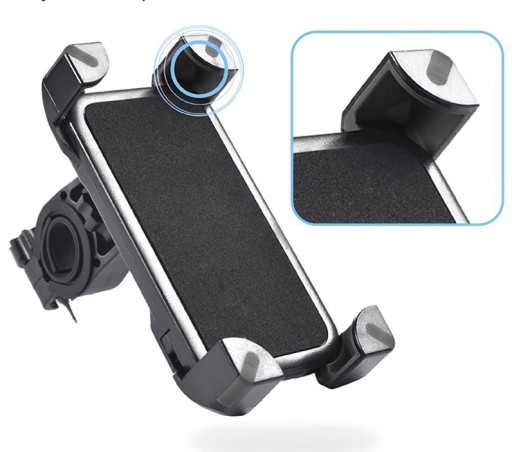 Uchwyt na telefon jest solidnie wykonany. Posiada 4 zaciskowe ramiona typu X bardzo mocno trzymające telefon. Ogromne możliwości dopasowania telefonu o szerokości od 58x115mm do 95x185mm sprawią że produkt nadal będzie użyteczny nawet jeśli zmienimy telefon na inny. Dzięki dołączonemu do zestawu uchwytowi możemy zamontować go na kierownicy. Obrotowa głowica pozwala obracanie telefonem w pionie i poziomie. Głębokość narożników obejmujących telefon to 12mm. Z tyłu umieszczone jest pokrętło, którym ustawia się pozycję ramion. Uchwyt wykonany jest z wysokiej jakości plastiku.