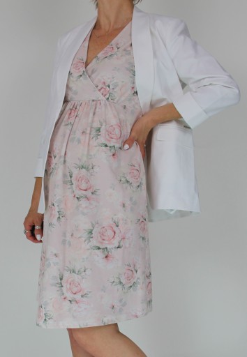 SUKIENKA CIĄŻOWA Z MOŻLIWOŚCIĄ KARMIENIA DZIĘKI KOPERTOWEMU DEKOLTOWI .