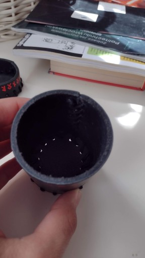 Jest to skórzany kubek do kości od Q-Workshop , w stanie bardzo dobrym. kupiłem go 4/5 lat temu, przez ten czas stał na półce. Runy na dolnej części kubka i koło szwu na pokrywce straciły trochę koloru jak widać na ostatnich zdjęciach ale po za tym wszystko jest z nim w porządku.