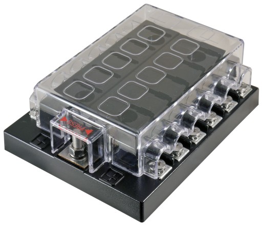 Profesjonalna skrzynka bezpieczników, idealnie nadaje się do montażu na jachtach czy w samochodach typu off-road. Dzięki przykręcanym konektorom posiadamy pewność że podczas wibracji konektor nie wysunie się z mocowania.