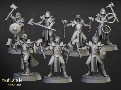 Przedmiotem oferty jest zestaw siedmiu modeli Sisters of Saint Helena od Highlands Miniatures, wydrukowanych na drukarce 3D w technologii SLA.