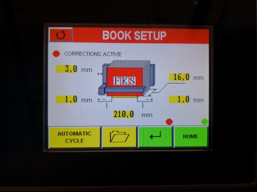 Bardzo precyzyjne automatyczne ustawy wszystkich parametrów, trzeba jedynie położyć okładkę i wsadzić blok