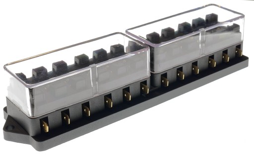 - Możliwość zamontowania 12 bezpieczników płytkowych tzw. płaskich ; Unival ; ATO ; 19 mm