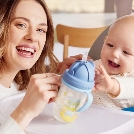 Kubek wyposażony jest w wygodne, szerokie uchwyty, które ułatwiają trzymanie go w malutkich rączkach. Sprawdzi się w domu, podróży i na spacerze.