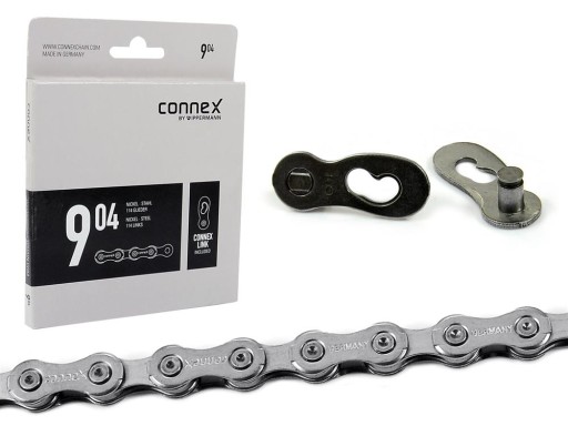 Nowe 9 rzędowe łańcuchy Connex'a wykorzystują specjalnie opracowany kształt ogniw, dzięki czemu idealnie dopasowują się do koronek kasety, a zmiana przełożeń odbywa się niezwykle gładko.