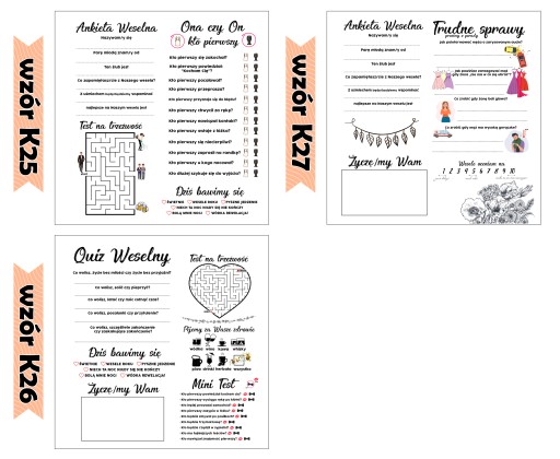 ⏩ Jeśli kupiłaś księgę gości prostokątną (21,7x30 cm) do wyboru masz poniższe wzory ankiet: