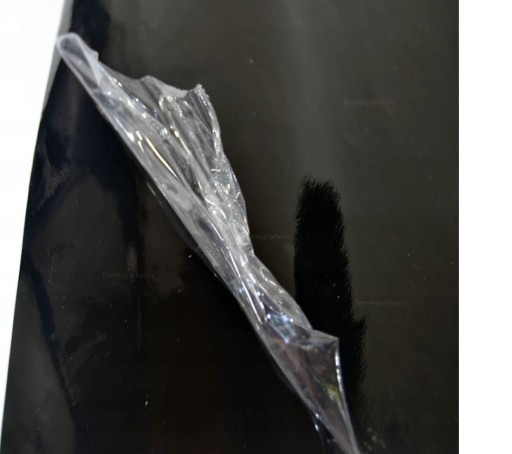 Folia czarny połysk robi się elastyczna po uprzednim podgrzaniu, cechuje się większą odpornością na zadrapania, żywotnością oraz technologią air drain, czyli klej kanalikowy, który umożliwia szybkie usunięcie bąbli czy pęcherzyków powietrza. Okleina odporna jest również na ścieranie, detergenty, a nawet oleje i smary.