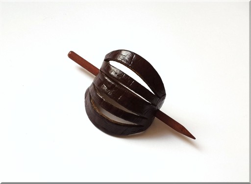 Spinka z drewnianą przetyczką długości ok. 11 cm.