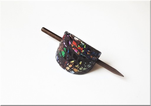 Spinka z drewnianą przetyczką długości ok. 11 cm.
