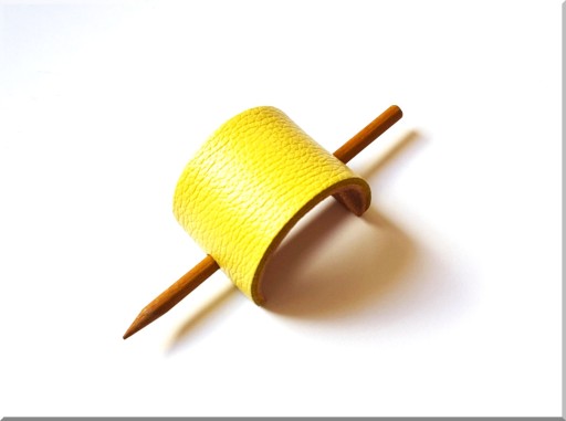 Spinka z drewnianą przetyczką długości ok. 11 cm.