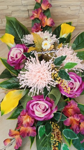 Zamawiasz ogólnie kolorystykę kompozycji, która może lekko się różnić od przedstawionych zdjęć (w razie jakiś braków kwiatków).