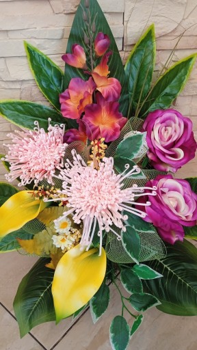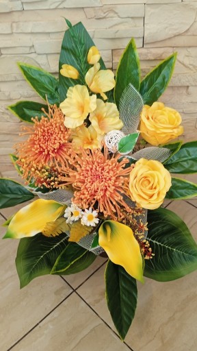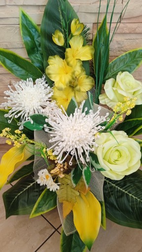 (cena dotyczy tylko bukietu do wazonu , natomiast kompozycja do postawienia na grobie dostępna na innej aukcji)