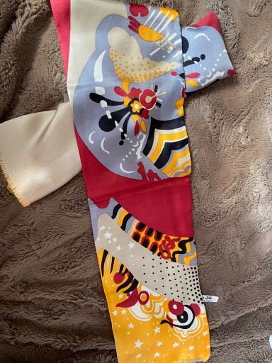 Witam na mojej aukcji. Mam do zaoferowania apaszkę wykonana w 100% z jedwabiu. Długość 112cm, szerokość 15cm