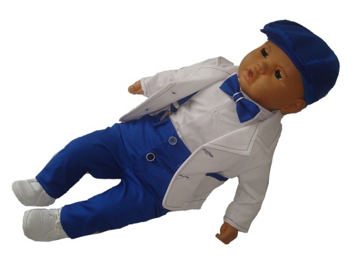 - MARYNARKA BIAŁA Z NIEBIESKI MIŁATAMI ZAPINANA NA GUZICZKI
